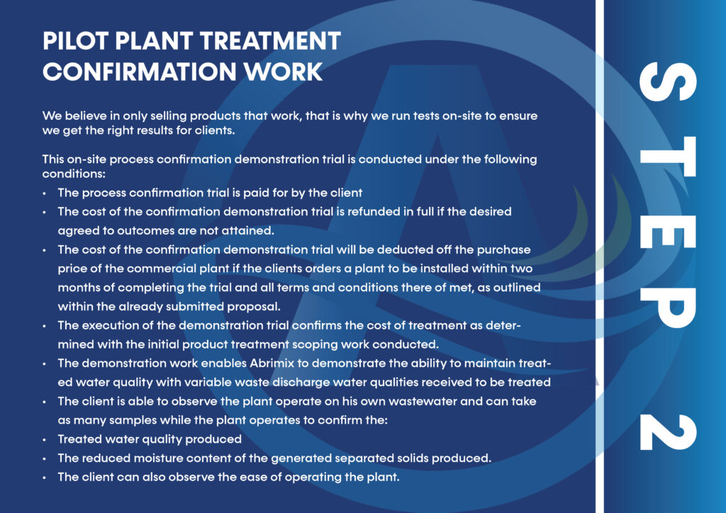 After conducting the process confirmation demonstration trial, Abrimix is able to take into account the results and quality of discharge water received for treatment and make plant design changes.